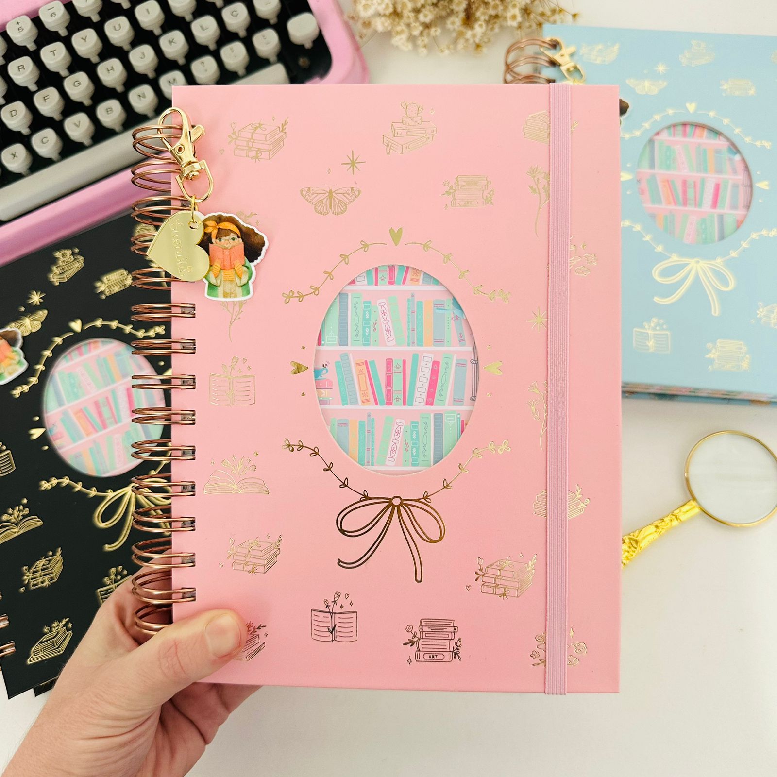 Diário de Leitura Dourado e Rosa Wire-o Reposicionável