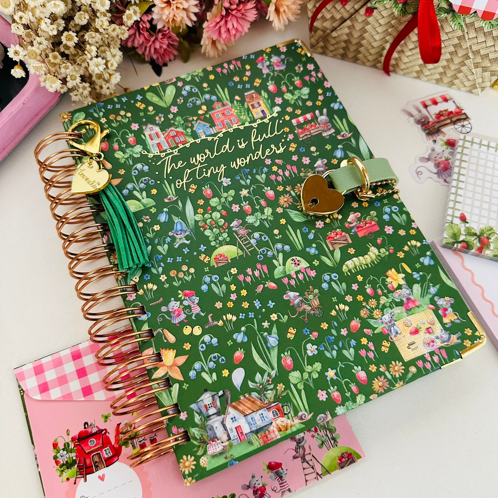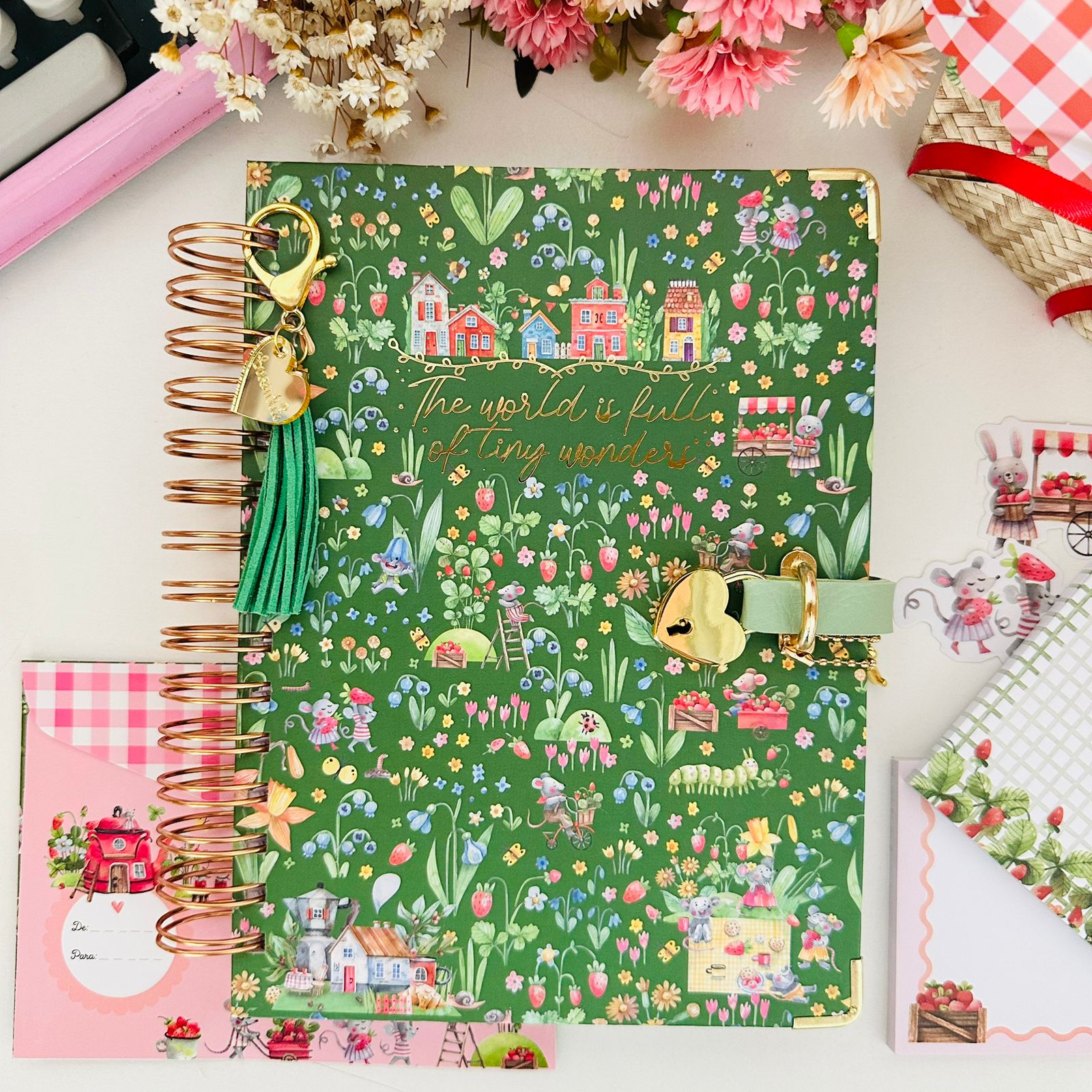 Diário Elegante com Cadeado Coração Dourado 100 Folhas – Fazenda de Morangos