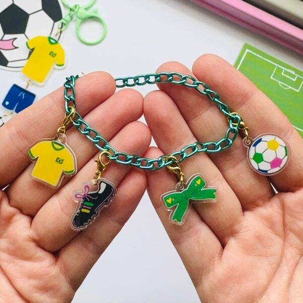 Com 17 cm, ela traz quatro charms exclusivos inspirados na energia e na emoção da Copa do Mundo, representando a paixão pelo esporte em cada detalhe. Um item perfeito para compor o look com estilo e personalidade, seja no dia a dia ou em dias de jogo.